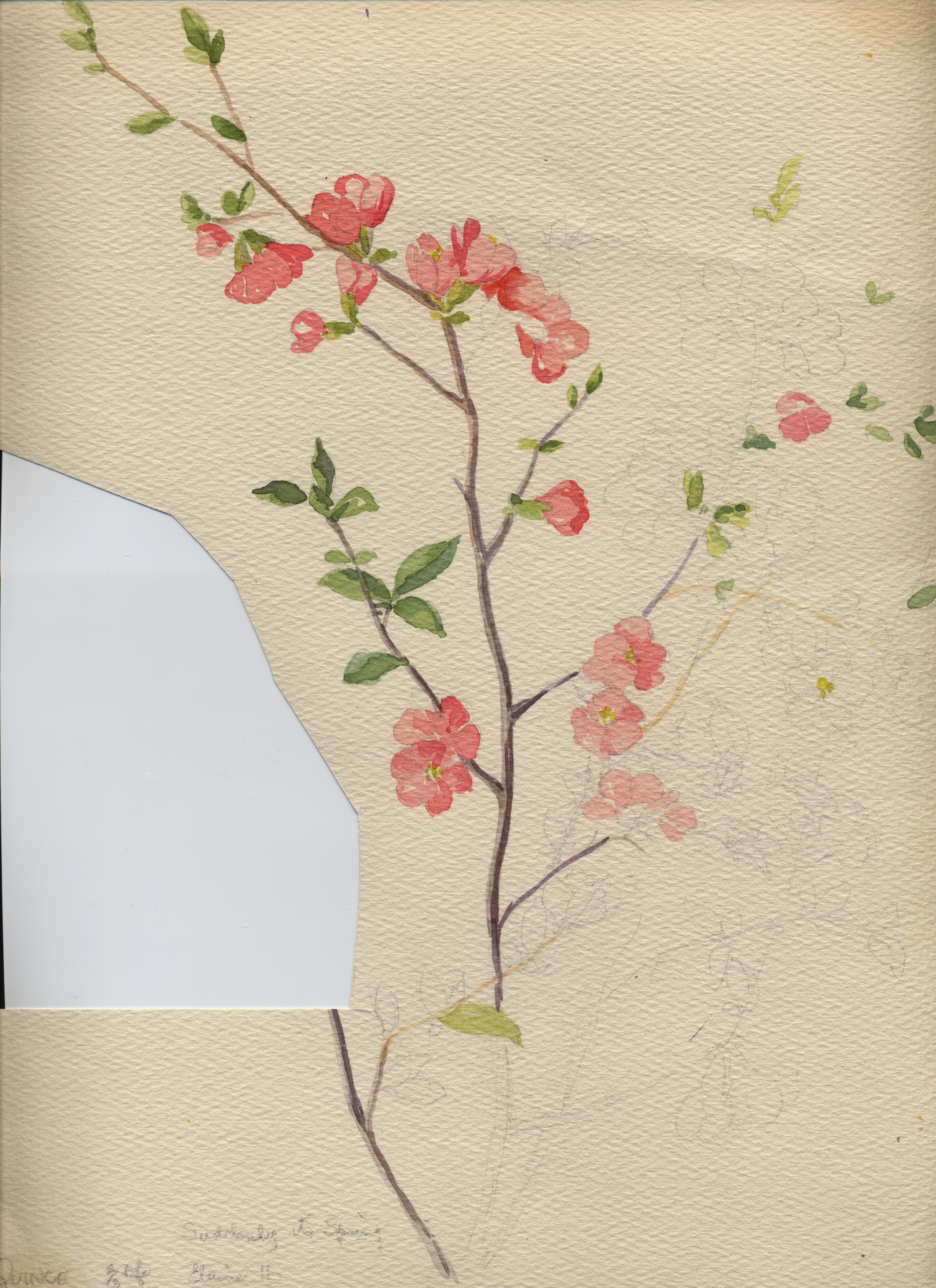 Unfinished watercolor of cherry blossoms