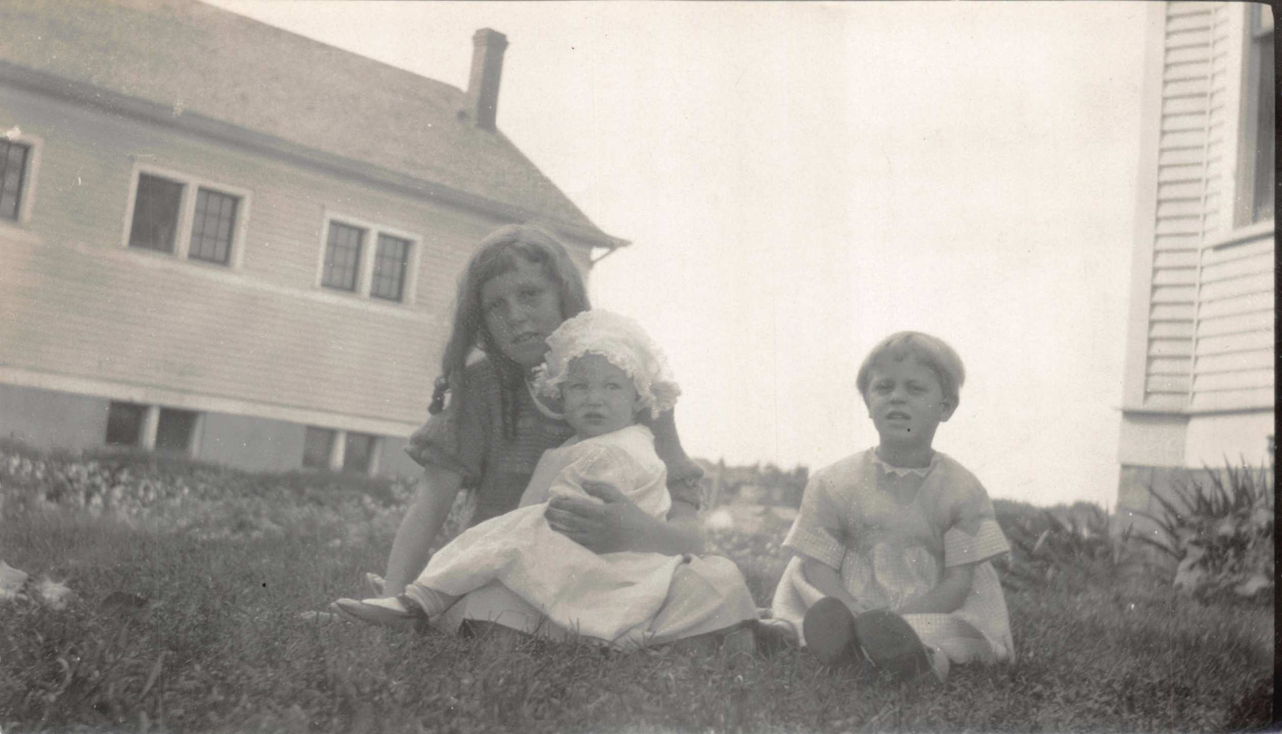 Dorothy, June, and Lois on the front lawn of their home in Lethbridge